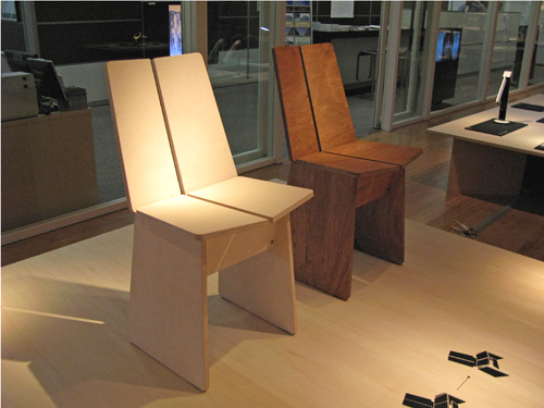 藤森泰司氏による合板素材を組み合わせた椅子「ローラス」。