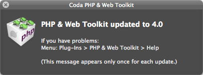 続いてCoda PHP & Web Toolkitをインストールします。これをインストールするとPHP、HTML、CSS、Javascriptの圧縮(minify化)やバリデートチェックが行えます。